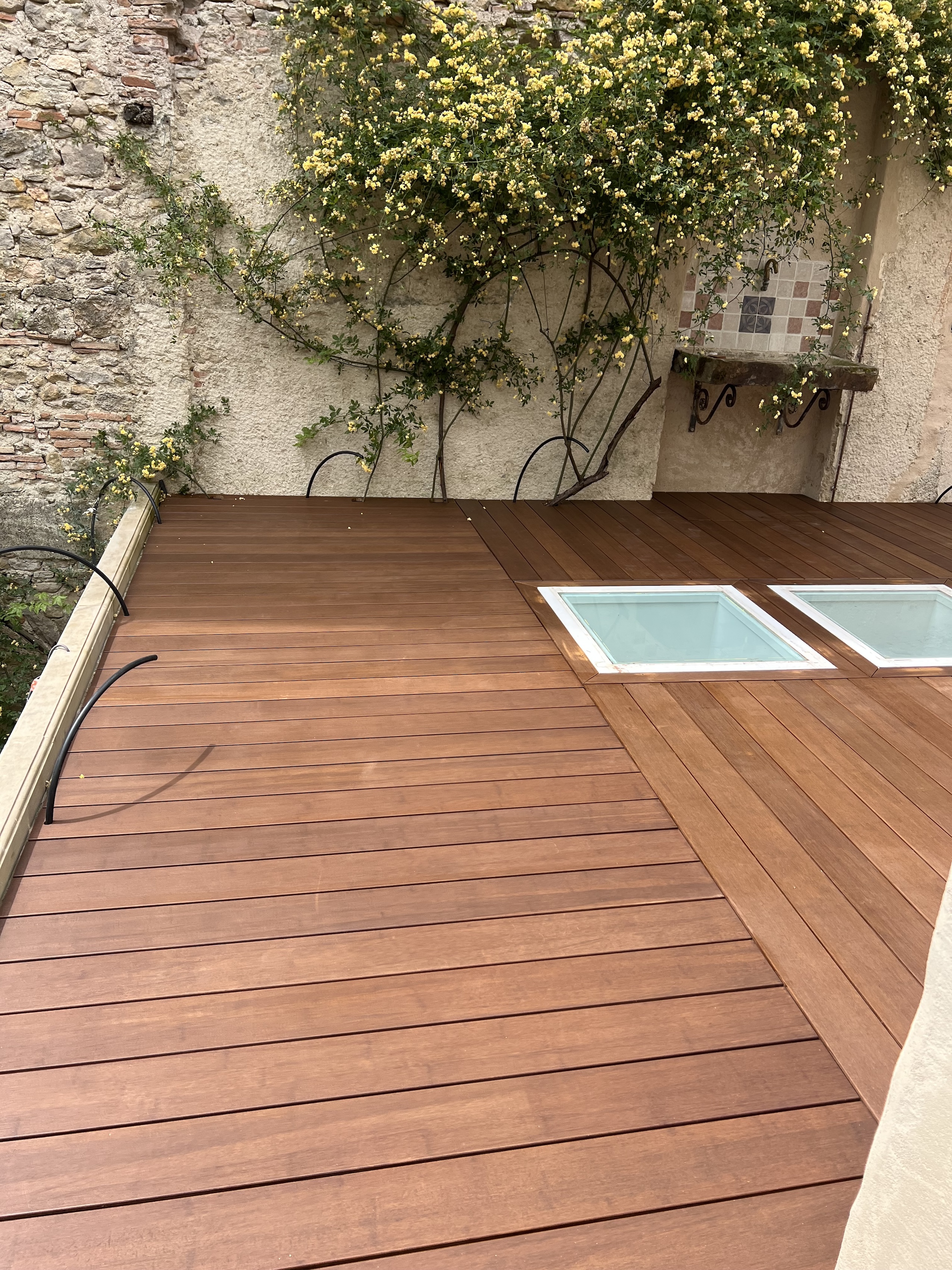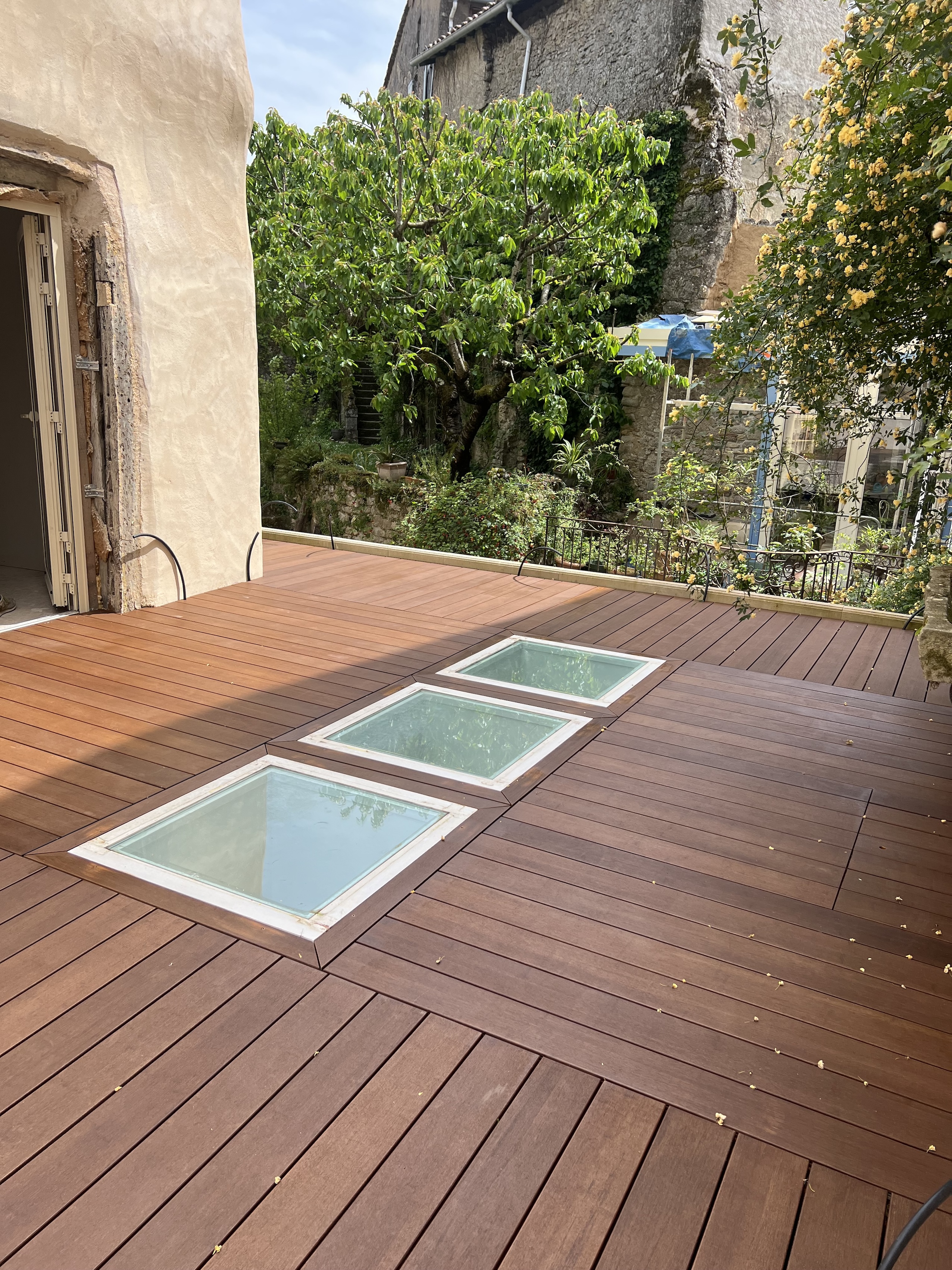 Création totale d'une terrasse en Bambou avec puits de lumières au centre